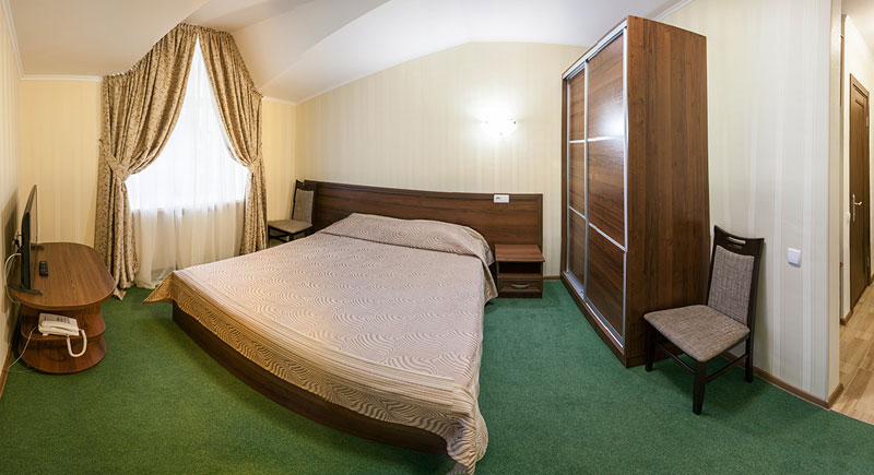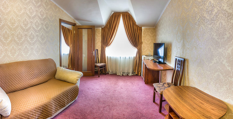 Двухкомнатный номер с гостиной и спальной комнатой. В номере – плазменный телевизор, мини-холодильник, спутниковое TV, бесплатный Wi-Fi. Каждый номер оснащен удобным рабочим столом. В гостиной комнате есть диван, который при необходимости может использоваться как дополнительное спальное место. Санузел с душевой кабиной.